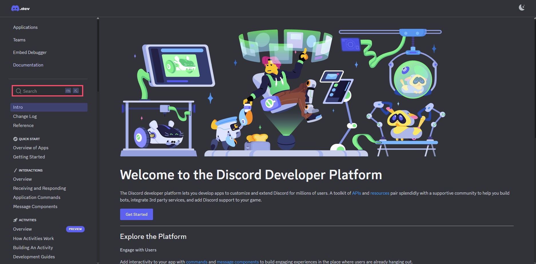 Head to the [Discord Developers Documentation](https://discord.com/developers/docs/intro) and have a look around the page and get comfortable with it. \
