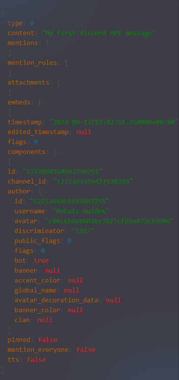 If you have completed all the steps above, head to the **Test Request** tab, and press "Test". You should know see a **Message Object**, and if you check your discord channel, you should see a message has been sent!